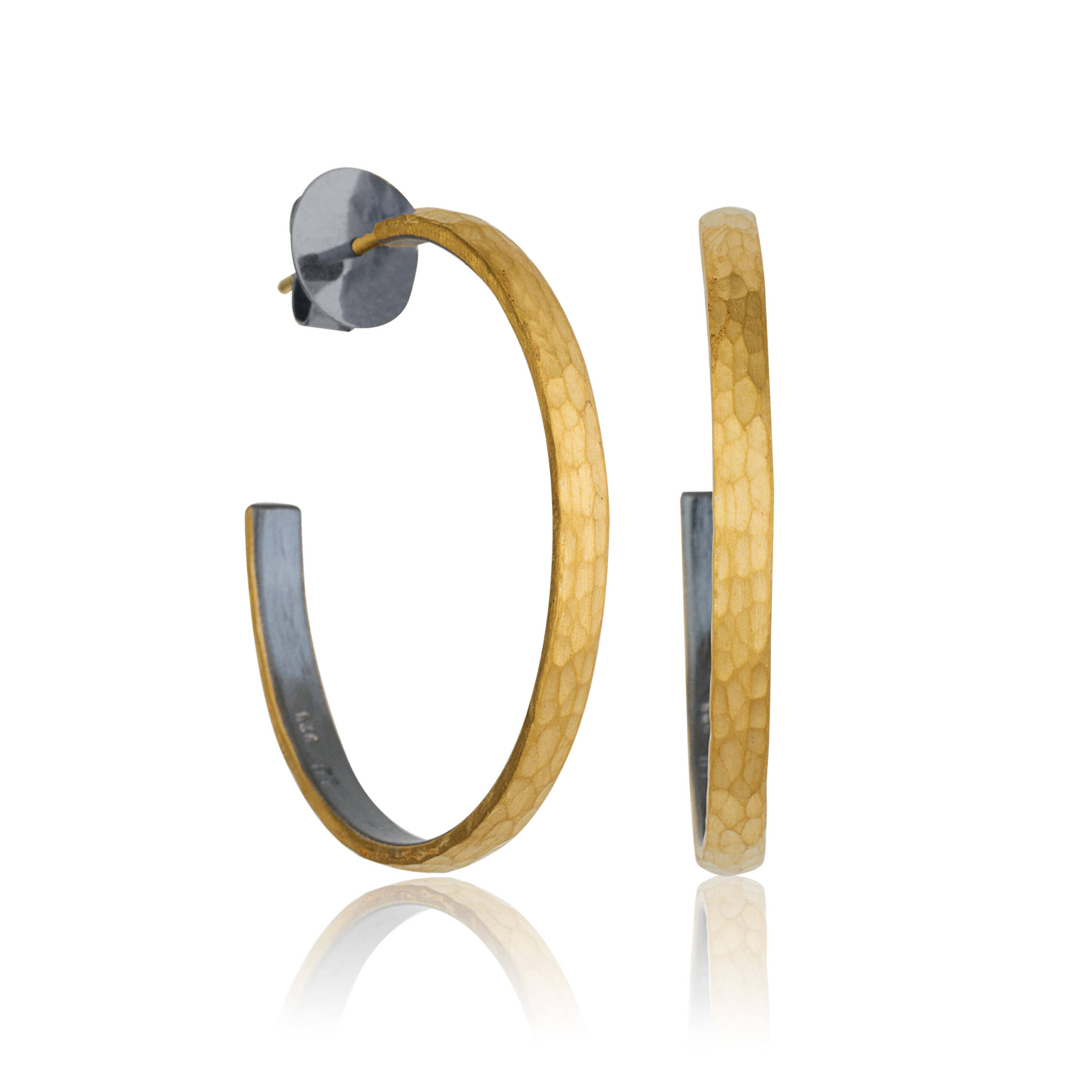 24K & OXIDIZED SILVER “FUSION” HOOP EARRINGS, apprx 40 MM,18k posts & OX SILVER backings.