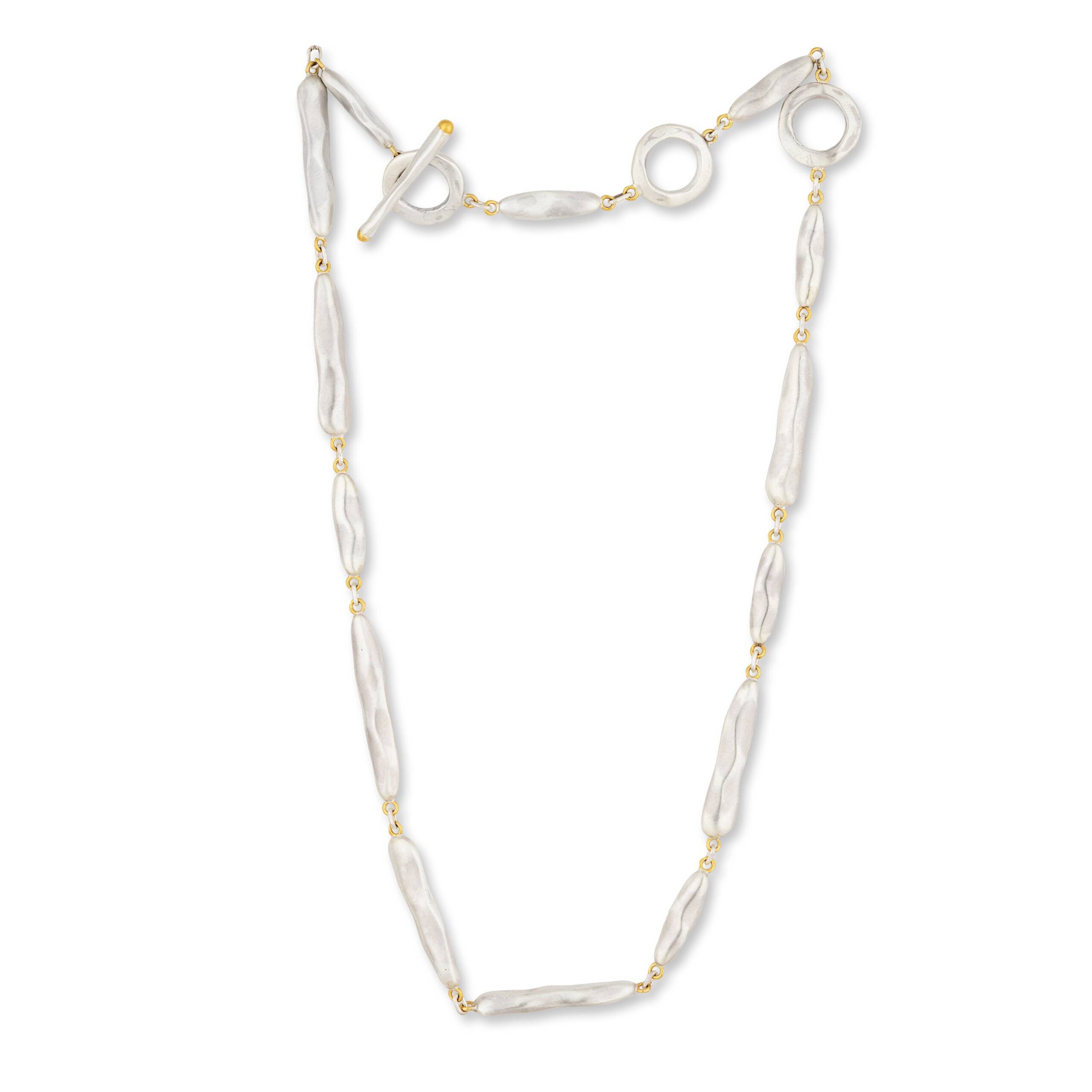 STERLING SILVER & 24K GOLD “BROOKE ” NECKLACE, STERLING SILVER TOGGLE CLASP, 20″