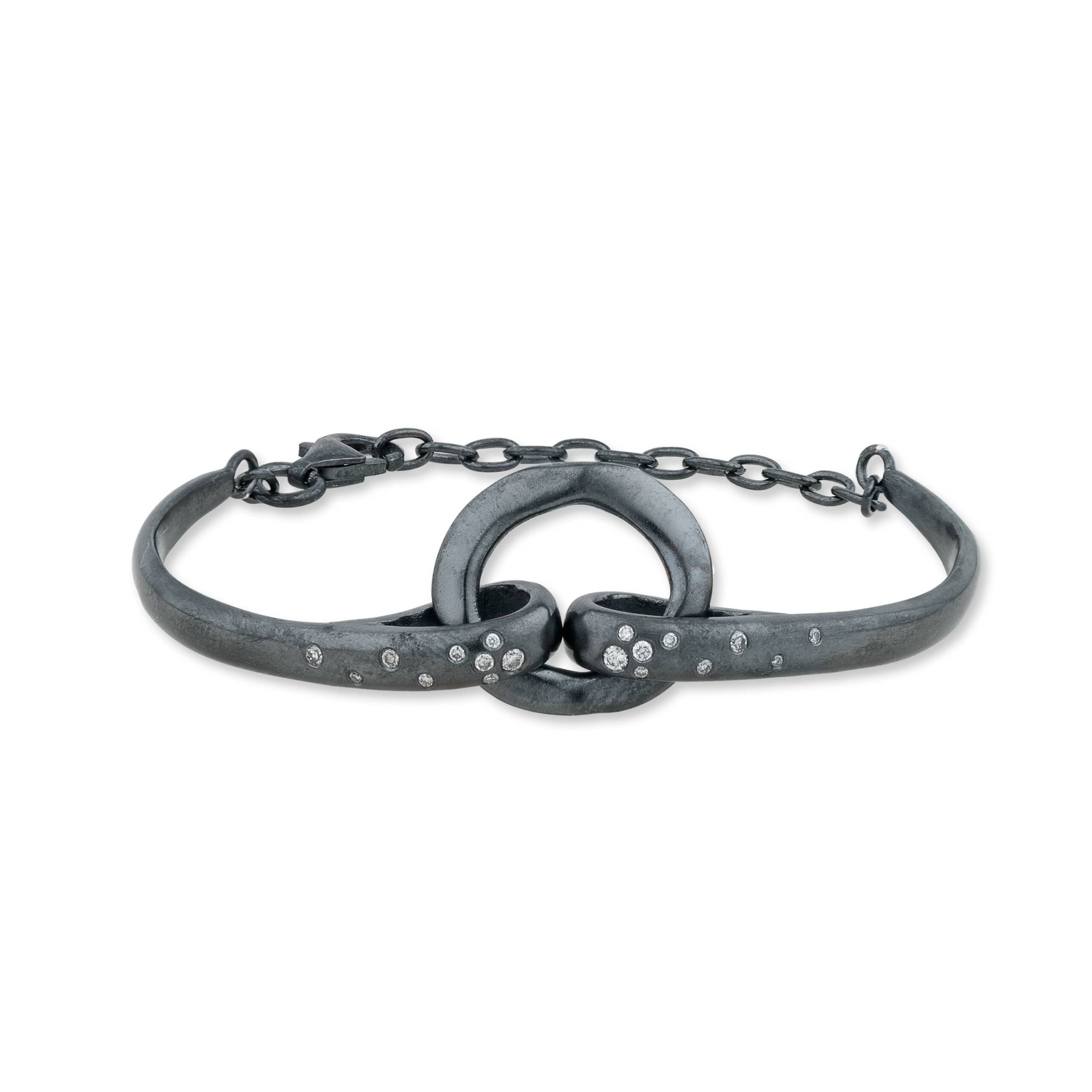 OXIDIZED STERLING SILVER ”MINI ORION” BRACELET, OXIDIZED SILVER LOBSTER CLOSURE, DIAMONDS, 17MM HOOP