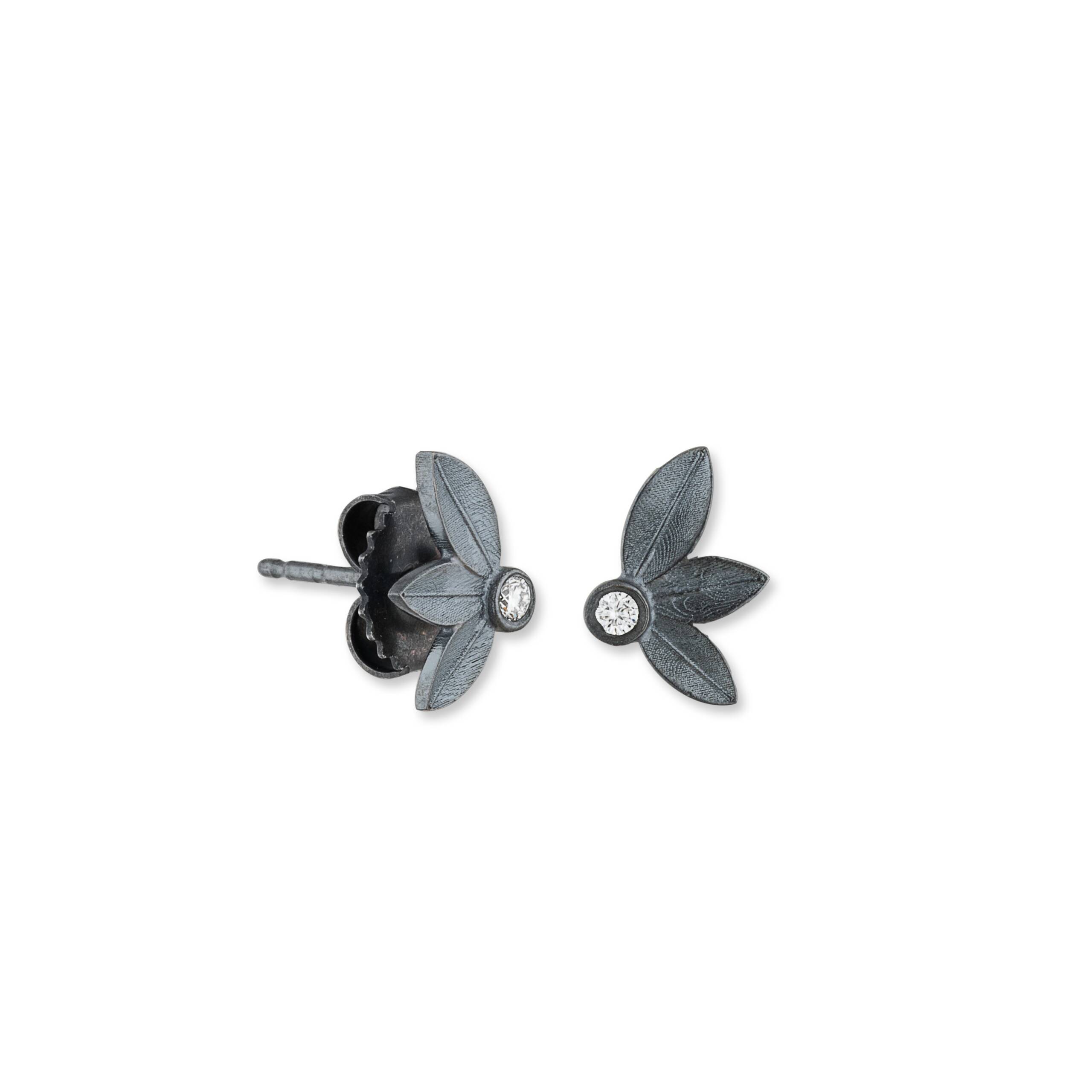 OXIDIZED STERLING SILVER “OLLIE” STUDS, DIAMONDS, silver posts & backings, approx 9X13mm