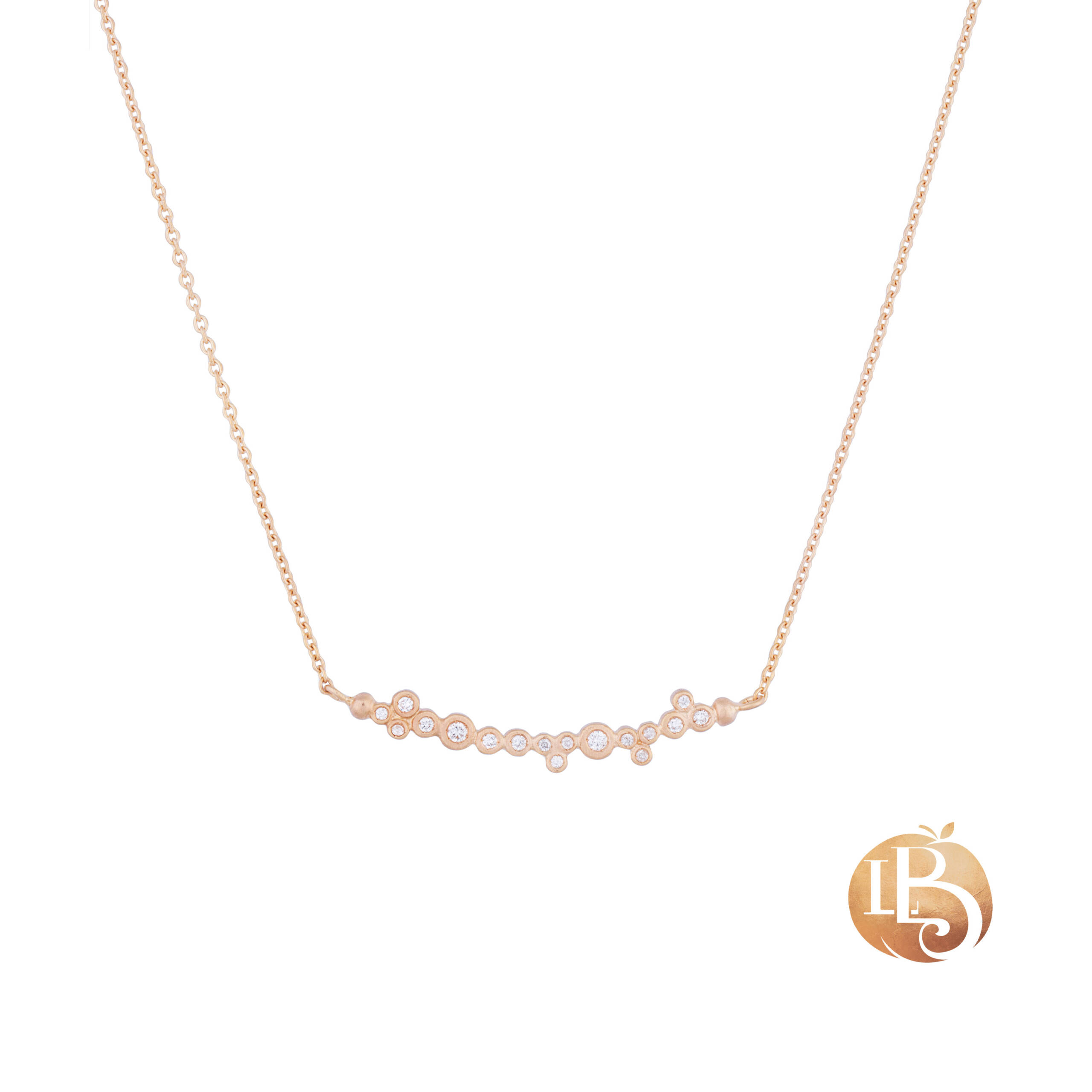 22K ROSE GOLD PEACH GLOW “DYLAN” NECKLACE WITH DIAMONDS ON 18K ROSE GOLD ADJ. CHAIN 15″-18″ TOGGLE CLOSURE 40G approx 38 mm